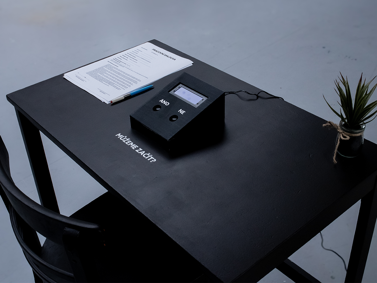 3D printed box, Arduino programmed built. Installation made to imitate office.
